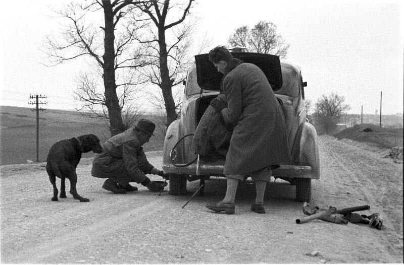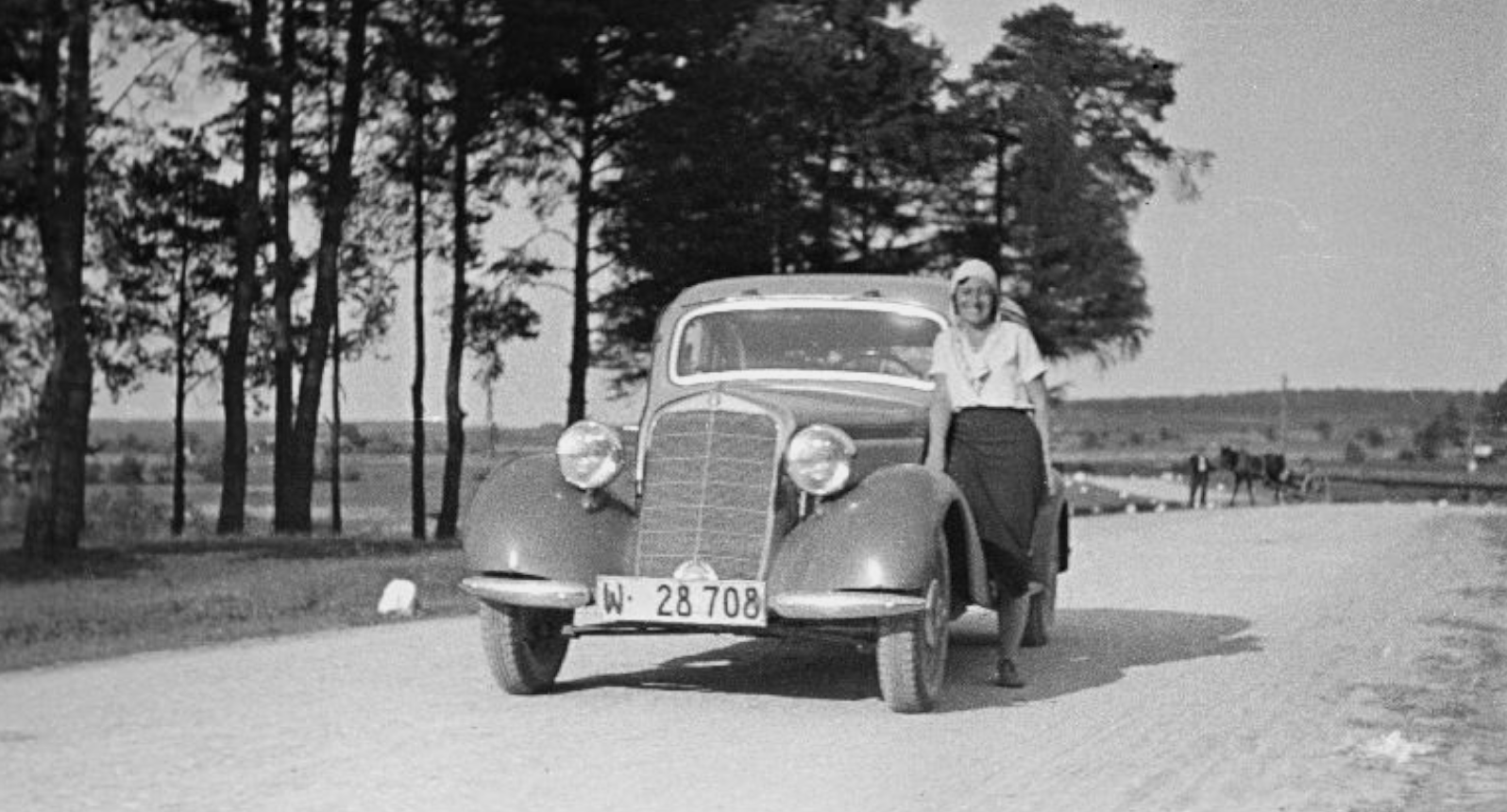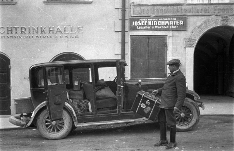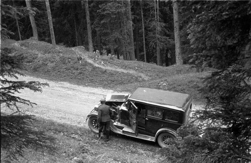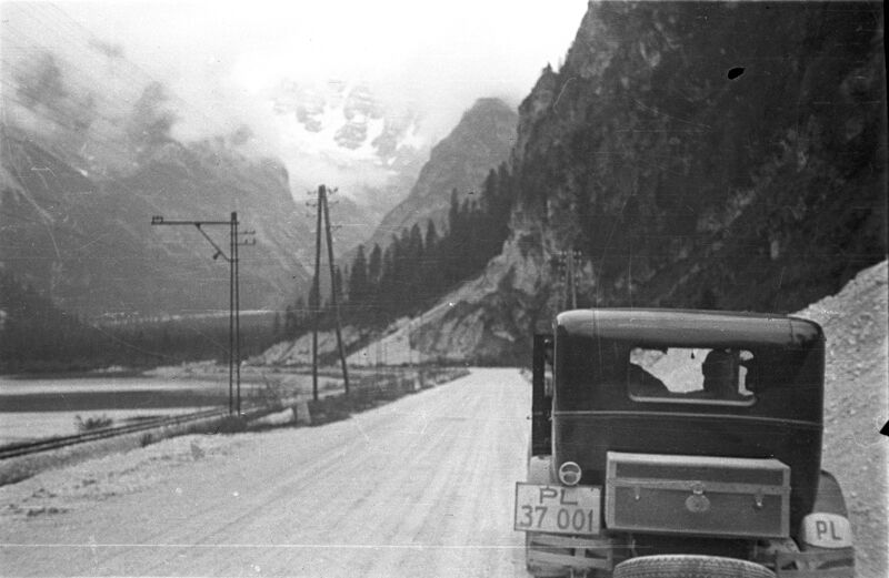 Samochód Zofii Chomętowskiej podczas podróży po Europie, Austria (źródło: Fundacja Archeologia Fotografii / Chomętowscy)