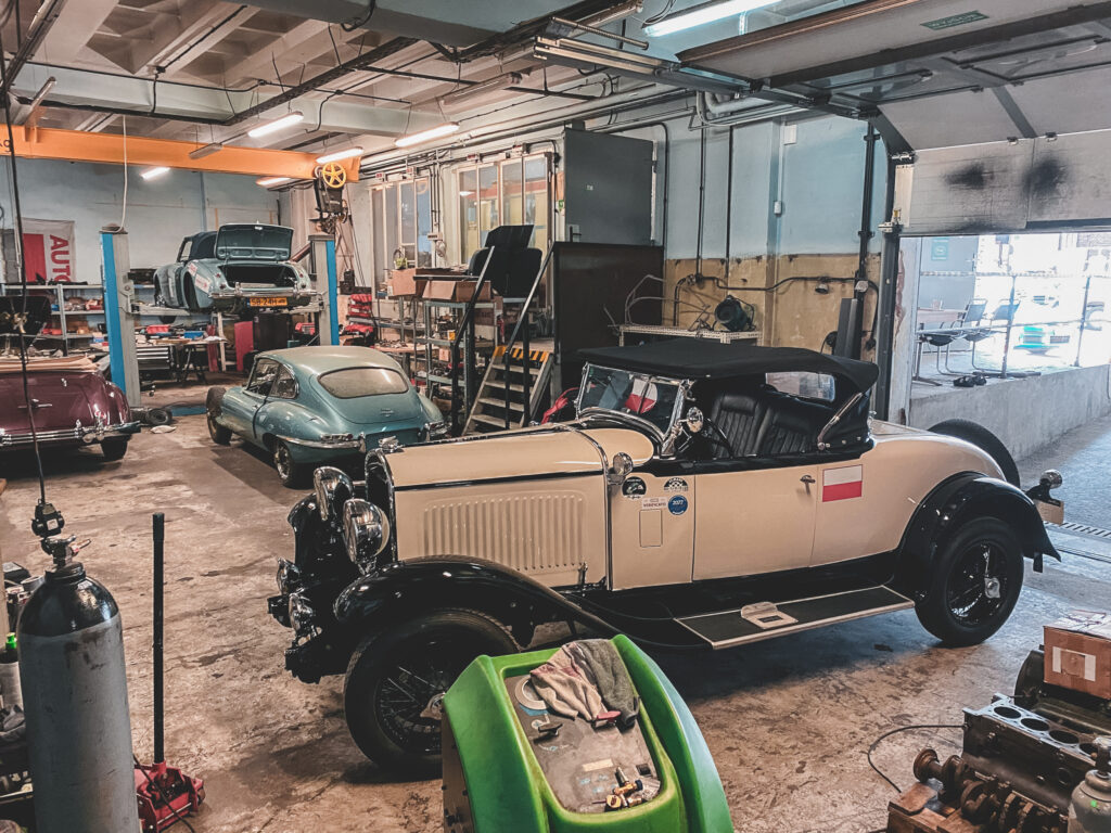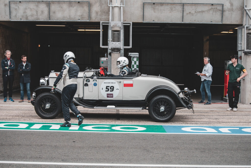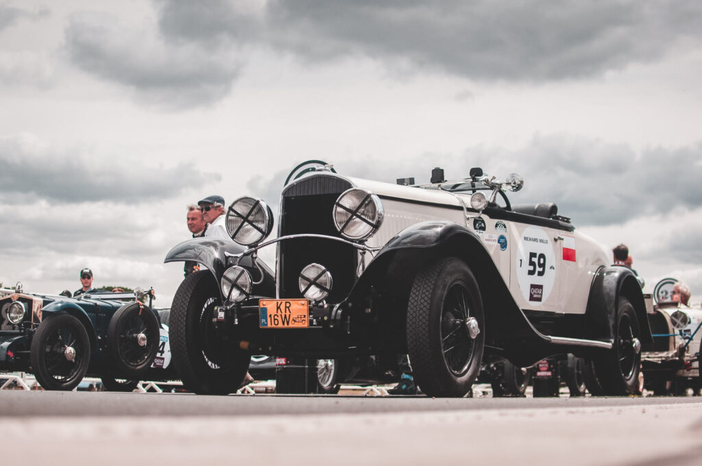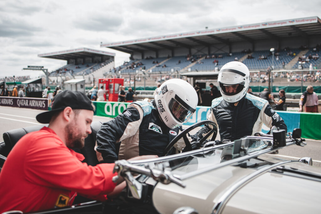 Zanim pan Marian wraz z teamem wystartował Chryslerem po raz pierwszy w Le Mans Classic w 2022 roku, do tej pory jest to jedyny zespół z Polski startujący w klasycznym wyścigu na de la Sarthe, auto trzeba było dokładnie sprawdzić po kapitalnym remoncie. Na pierwszy ogień poszedł rajd 1000 mil Československých. Razem z panem Bartoszem Balickim zajęli 1. miejsce w swojej klasie i 6. w generalce na 200 startujących przedwojennych aut. To pokazuje, że Chrysler jest stworzony do jazdy długodystansowej. Rajdy różnią się od wyścigów. Podczas wyścigu samochód pracuje długotrwale na wysokich obrotach, ważna jest prędkość maksymalna, niska waga i małe opory powietrza. Dlatego do wyścigów demontujemy zbędne elementy z samochodu, kładziemy przednią szybę i musimy zadbać o układ chłodzenia, smarowania i hamulce. – komentuje pan Balicki dokręcając kombinerkami opuszczoną na maskę szybę. Zaraz zaczyna się pierwsza sesja kwalifikacyjna. Ruszamy do pit lane!