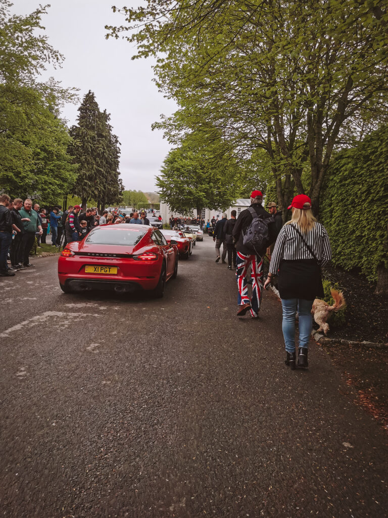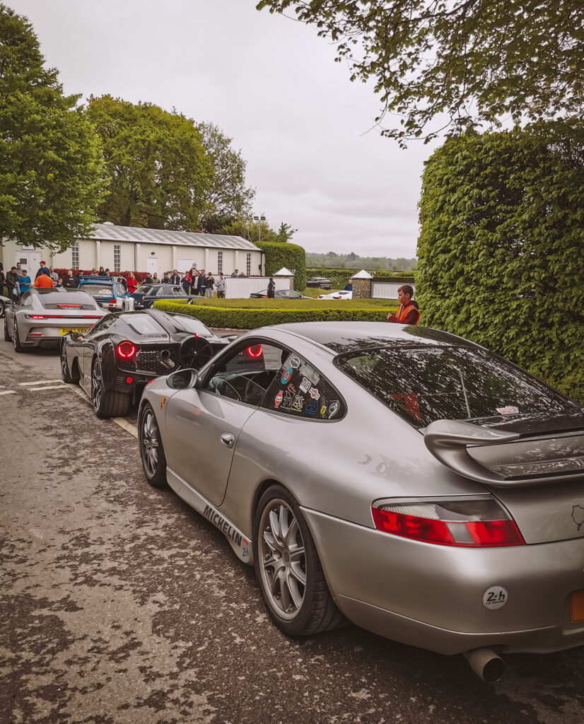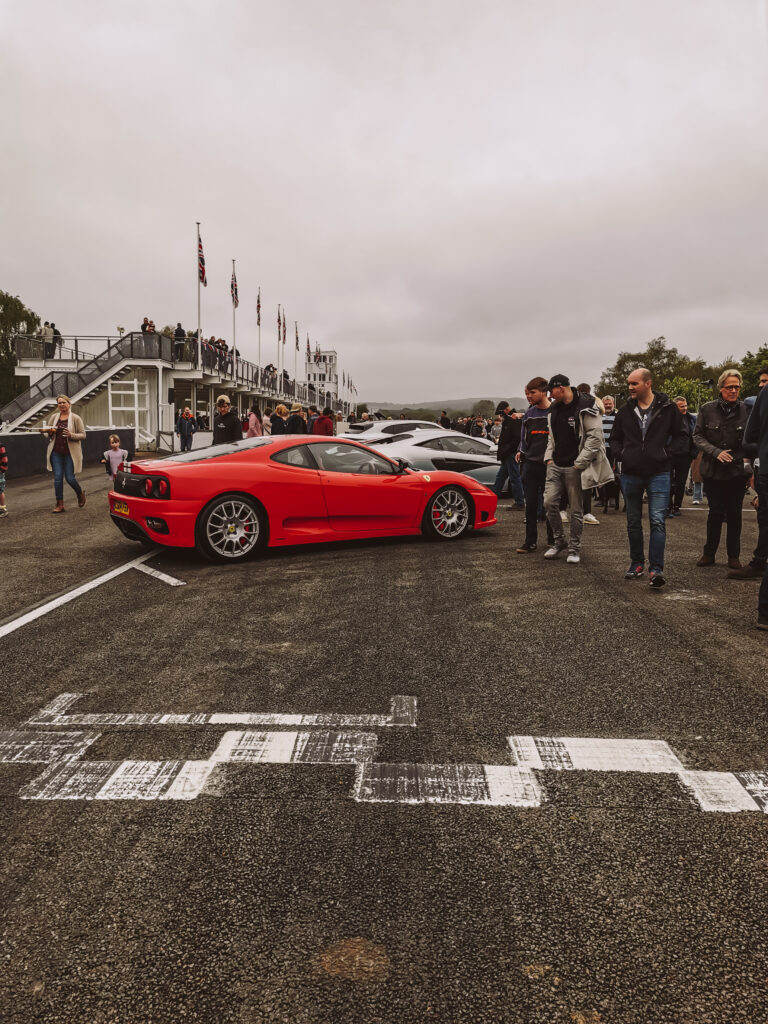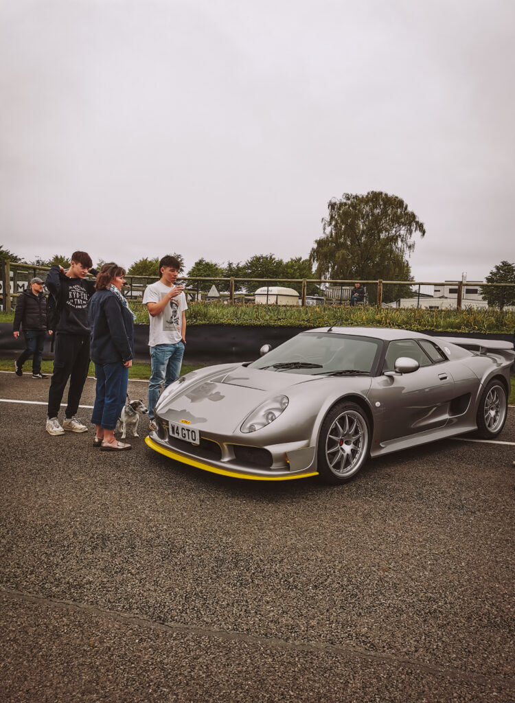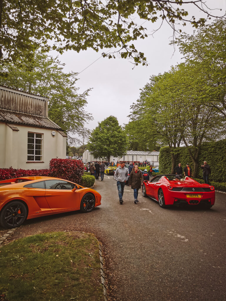 Wizytę na torze rozpoczęliśmy od symbolicznego odwiedzenia grobu Bruce’a McLarena, który zginął na Goodwood 2 czerwca 1970 roku, podczas testów swojego nowego samochodu M8D. Nieopodal miejsca jego spoczynku znajduje się pomnik Mike’a Hawthorna ufundowany między innymi przez Nigela Webba. Po tej chwili refleksji nad niebezpieczeństwem jakie niesie ze sobą motorsport przeszliśmy do spotkania, które przywiodło nas na wyspy. Motywem przewodnim pierwszego w tym sezonie spotkania Goodwood Breakfast Club było Supercar Sunday. Na tor ściągnęły prawdziwe tłumy petrolheadów. Podobno już godzinę przed otwarciem bramy przed wjazdem ustawiały się kolejki Ferrari i Porsche. W istocie, Ferrari to prawdopodobnie najpopularniejszy supercar w Wielkiej Brytanii, bo na nitce toru ustawiło się ich naprawdę mnóstwo. Na torze można było spotkać wiele znanych osób ze świata motoryzacji, takich jak Rafał Pilch z Śniadanie & Gablota Kraków, czy Timothy Burton aka Shmee 150 ze swoim AMG SLS Black Series.