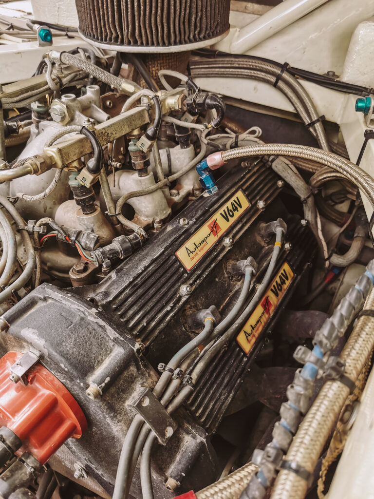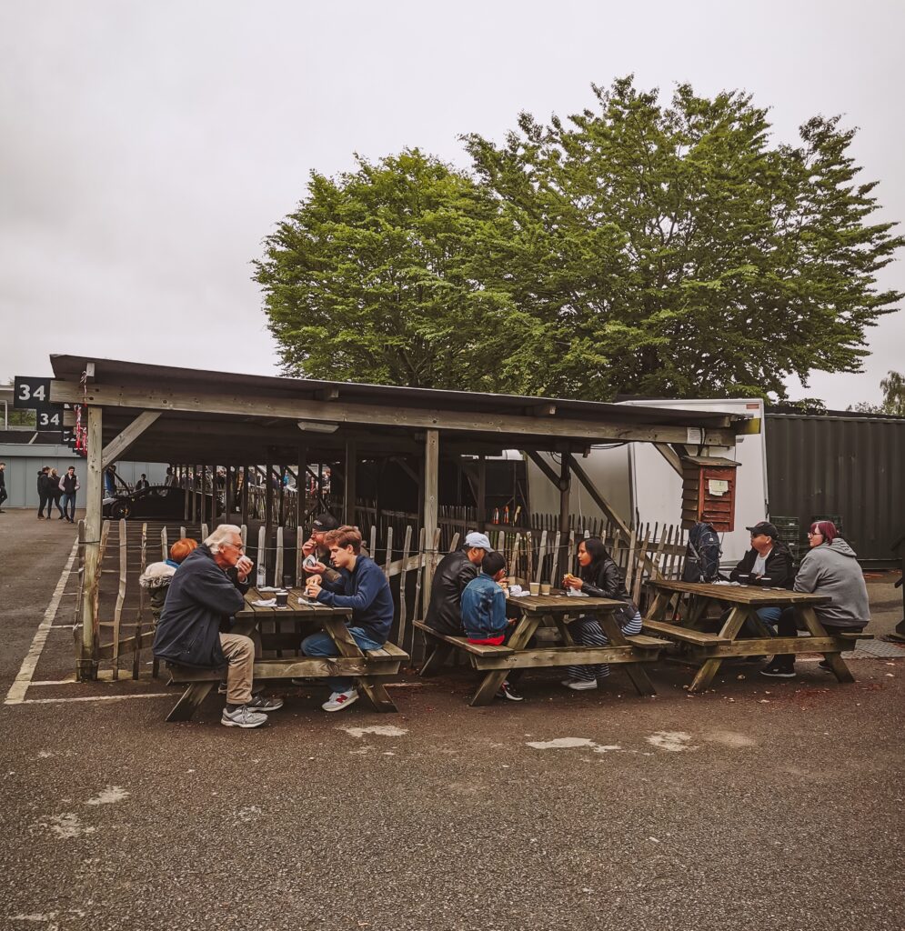 Oczywiście nie zabrakło śniadania! Do dyspozycji gości było kilka foodtrucków z różnymi ofertami gastronomicznymi i pyszną kawą, która skutecznie wyrównywała poranne zmagania z budzikiem. Całe wydarzenie ma świetny klimat, przede wszystkim ujęło nas pozytywną energią, otwartością uczestników i organizatorów. Po kilku ciekawych rozmowach przyszedł czas pożegnania z torem Goodwood. Dla nas nie był to jednak koniec motoryzacyjnych emocji tego dnia. Po powrocie na farmę, Tomek oprowadził nas po warsztatach, w których wraz z zespołem przygotowuje teamowe Jaguary do wyścigów. Zajrzeliśmy również do prywatnego, na co dzień niedostępnego dla gości, muzeum poświęconego Mike’owi Hawthornowi. O tym opowiemy w kolejnym materiale z naszego weekendowego wyjazdu do Wielkiej Brytanii!